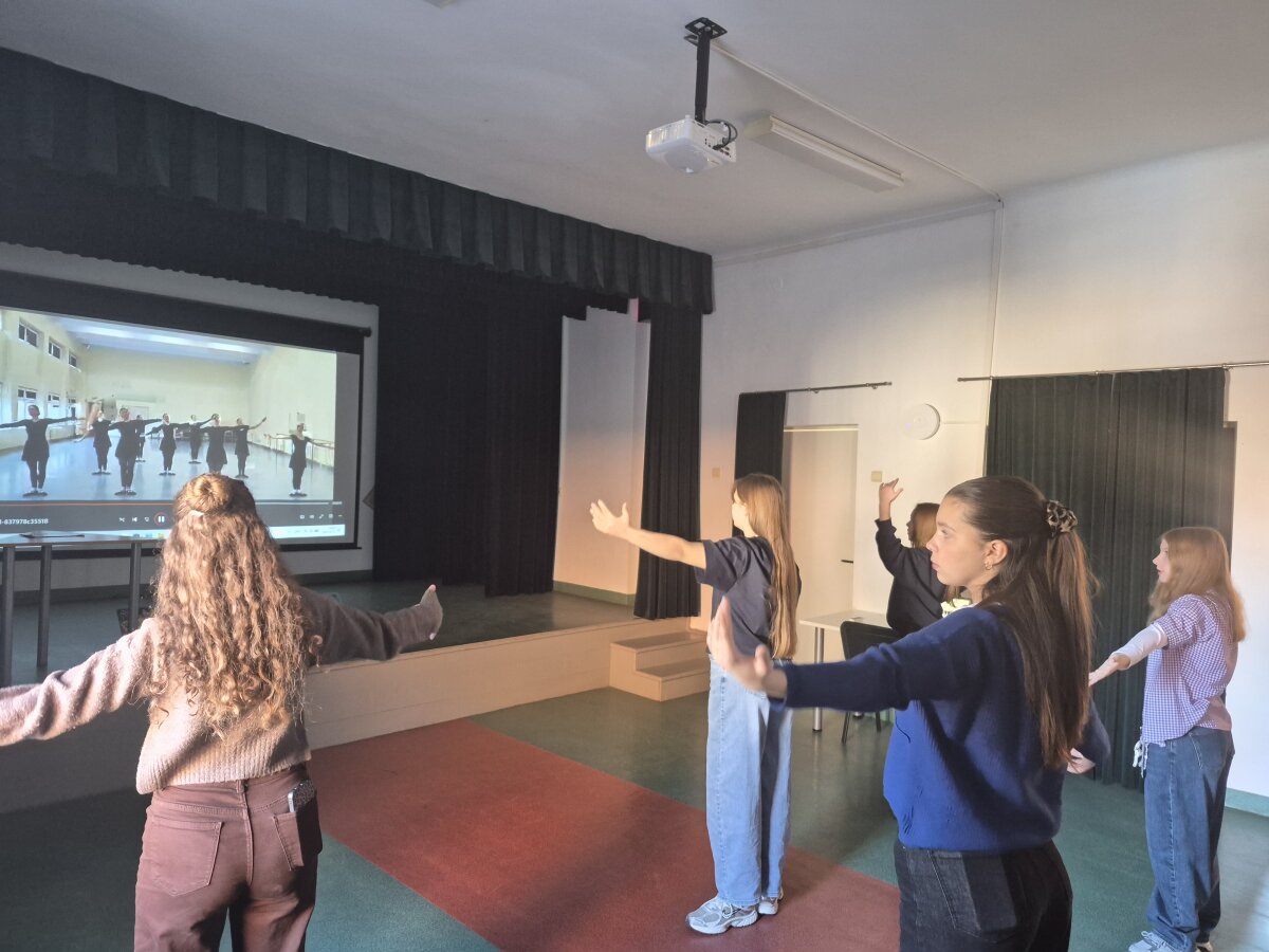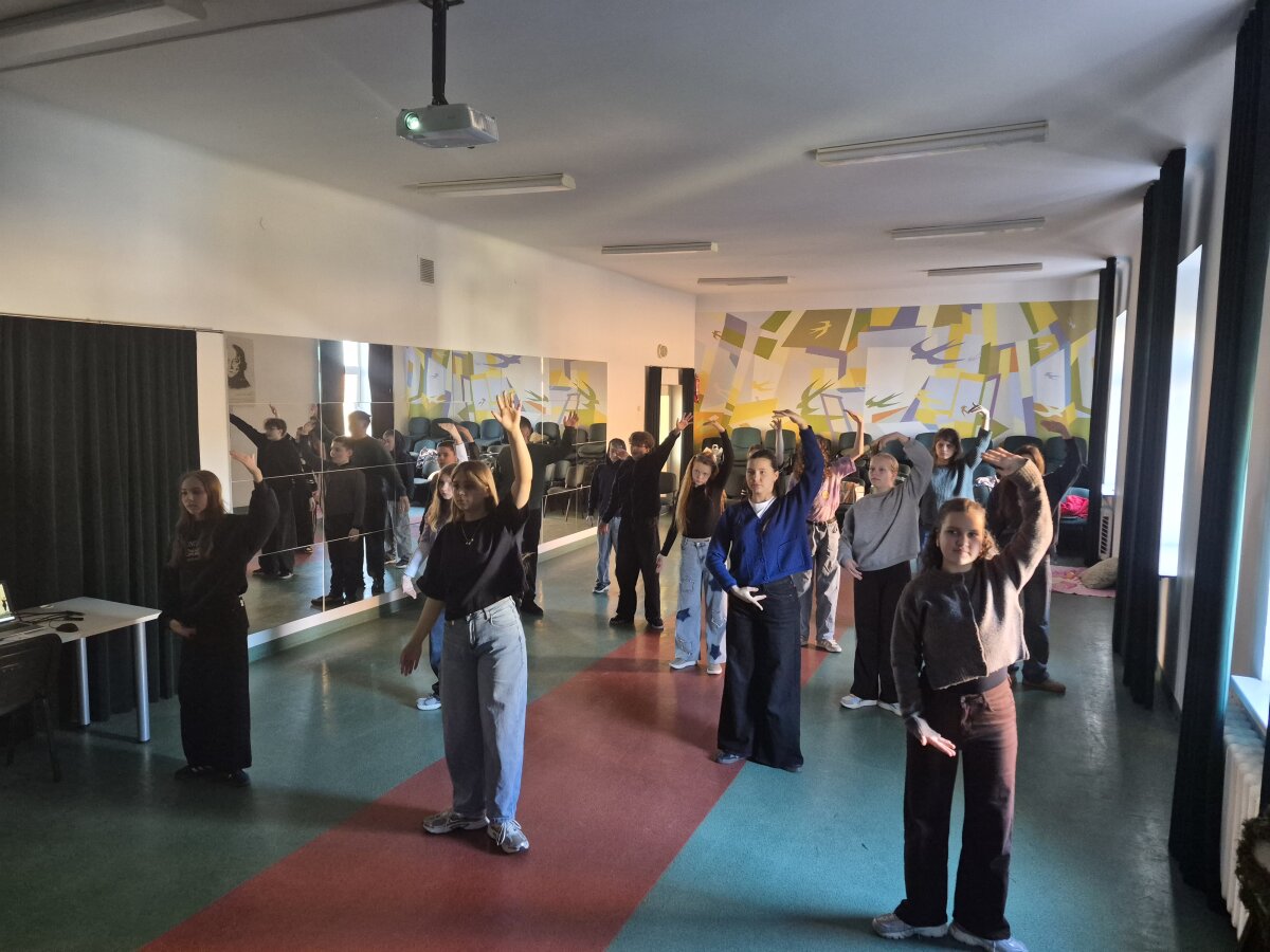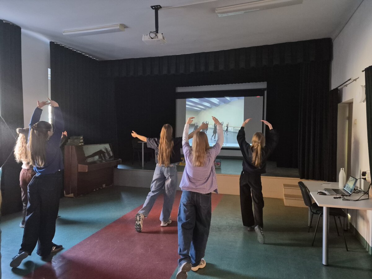 Pamokos pradžioje studentai demonstravo pagrindines klasikinio šokio pozicijas bei judesių derinius. Mokiniai stebėjo taisyklingą kūno laikyseną, rankų ir kojų padėtis, judesių tikslumą, o vėliau patys kartu su studentais išbandė parodytas pozicijas. Praktinės veiklos metu mokiniai dirbo sekdami demonstraciją – kartojo judesius, derino rankų ir kojų koordinaciją, stengėsi išlaikyti judesio estetiką ir tikslumą. Pamokoje daug dėmesio buvo skiriama rankų pozicijoms ir jų perėjimams – mokiniai nuosekliai kėlė rankas į skirtingas pozicijas, mokėsi išlaikyti jų formą, judesio lengvumą ir kontrolę. Taip pat buvo atliekami paprasti judesių deriniai vietoje, leidžiantys geriau pajusti koordinaciją ir kūno valdymą. Buvo trumpai aptarti klasikinio šokio pagrindai, mokytojai perduota vaizdo medžiaga, kuri bus naudojama tolimesniame mokymosi procese.